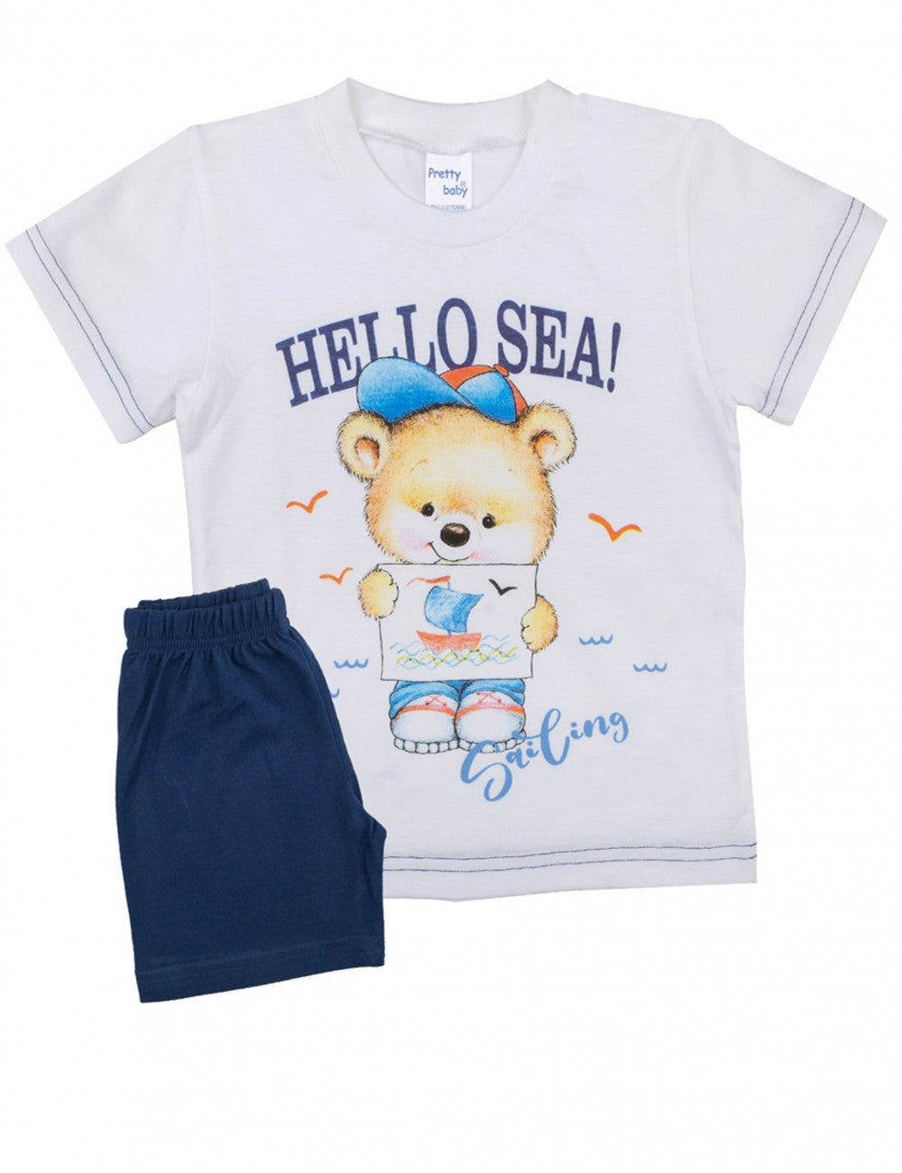 Βρεφικό σετ από 0-4 με μπλουζάκι κοντό μανίκι και κοντό παντελονάκι. Ποιοτικό, οργανικό βαμβάκι, οικολογικές βαφές, άψογης ελληνικής ραφής από την pretty baby, (η εταιρία με την πλέον αναγνωρίσιμη, κορυφαία ποιότητα κατασκευής στα βρεφικά). Έτσι ώστε το νέο μέλος να έχει όλη την άνεση, την απαλότητα και την υγιεινή, που μπορεί να υπάρχει