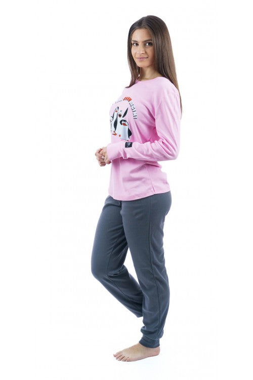 Γυναικεία φόρμα ύπνου 100% βαμβάκι με τύπωμα PENGUIN #1279