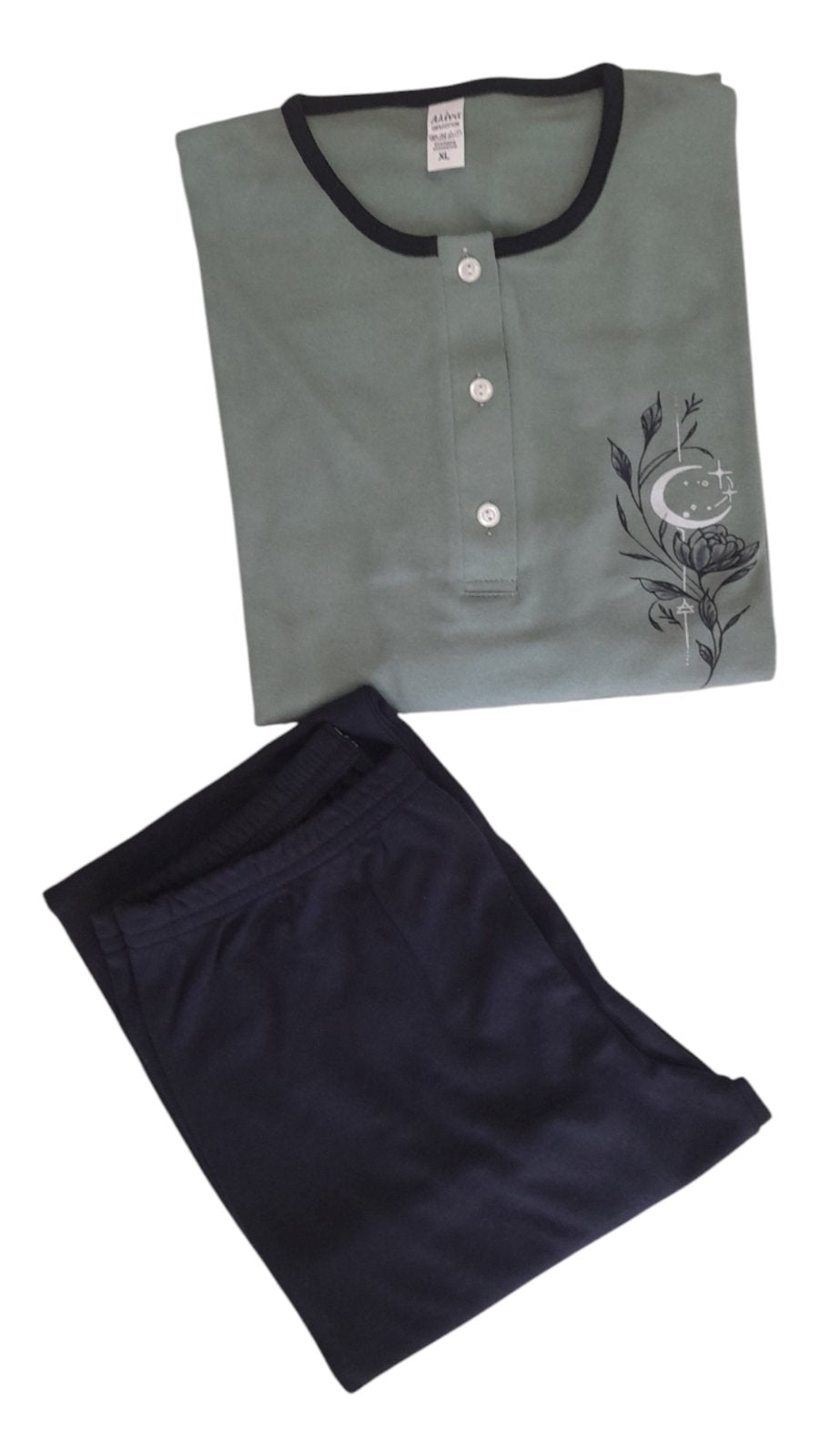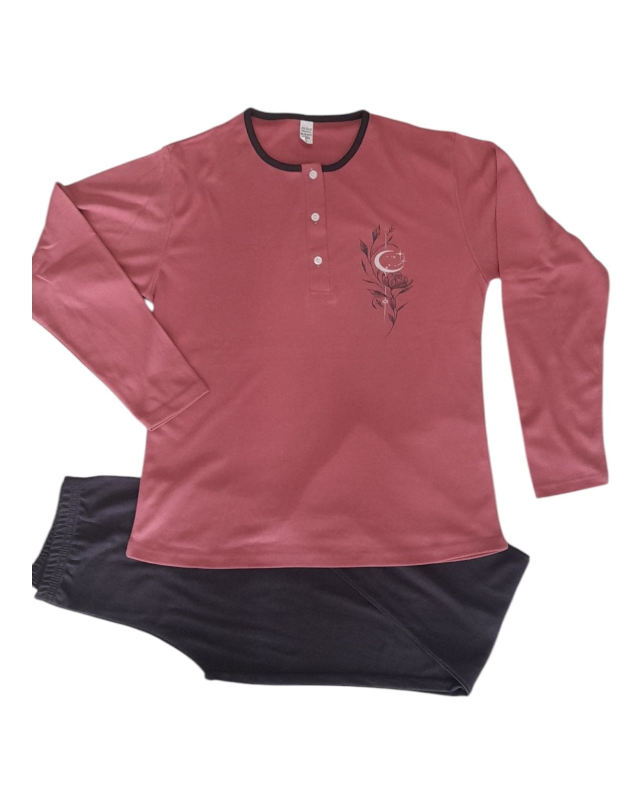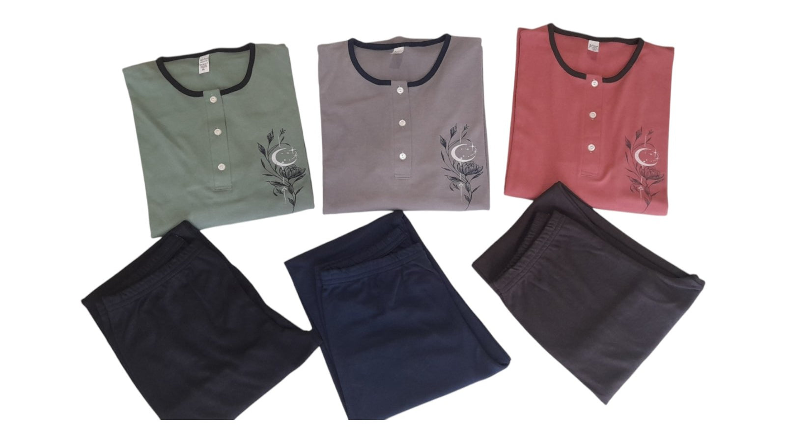 Γυναικεία ίντερλοκ ολοβάμβακη πιτζάμα ελληνικής ραφής με εξαιρετική ποιότητα υφάσματος και κατασκευής. Ίσιο παντελόνι με ελαστική μέση και μπλούζα με τρία κουμπιά. Αξεπέραστη αίσθηση άνεσης και ευχάριστης απαλής υφής.