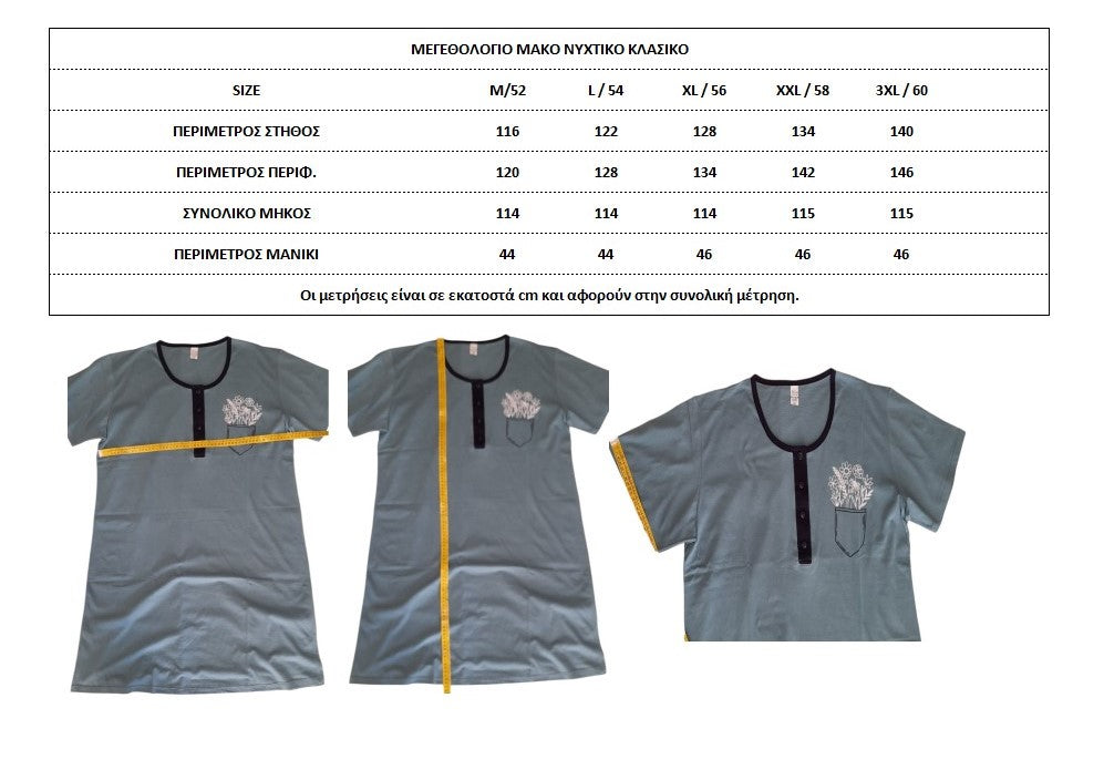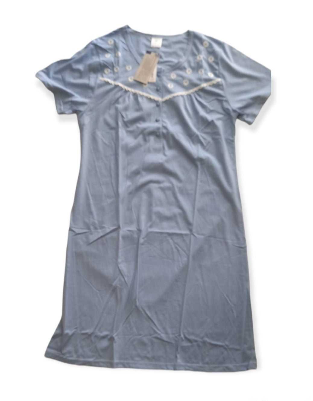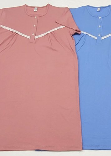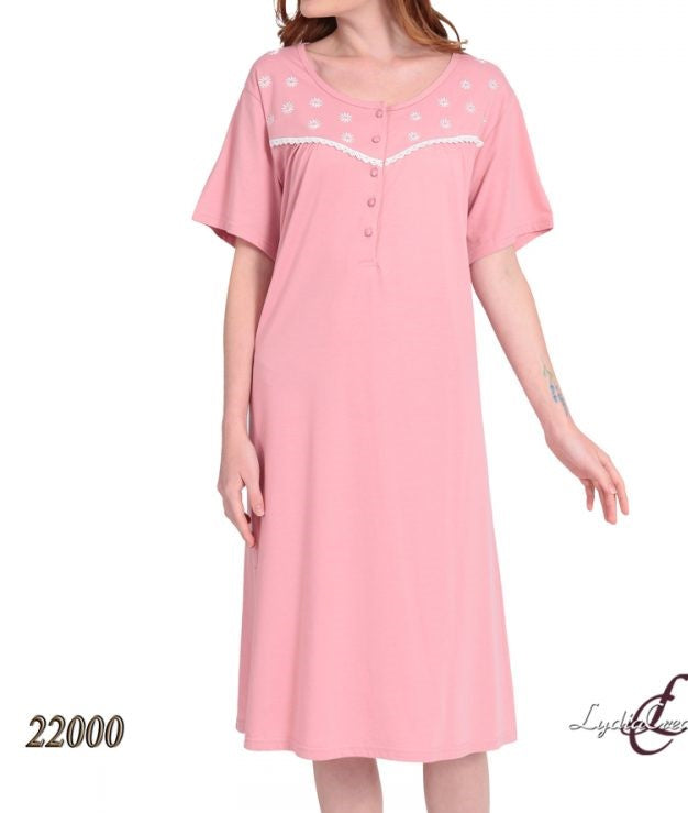 Κλασική Νυχτικιά με κοντό μανίκι βαμβακερή μονόχρωμη #22000