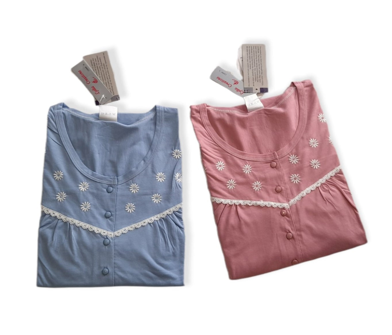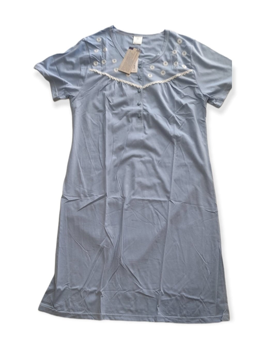 Κλασικό κοντομάνικο νυχτικό βαμβακερό για απόλυτη άνεση και δροσιά. Σε άνετη, σχεδόν τετράγωνη γραμμή με βαθιά πατιλέτα με κουμπιά. με διακριτικό κέντημα στο στήθος