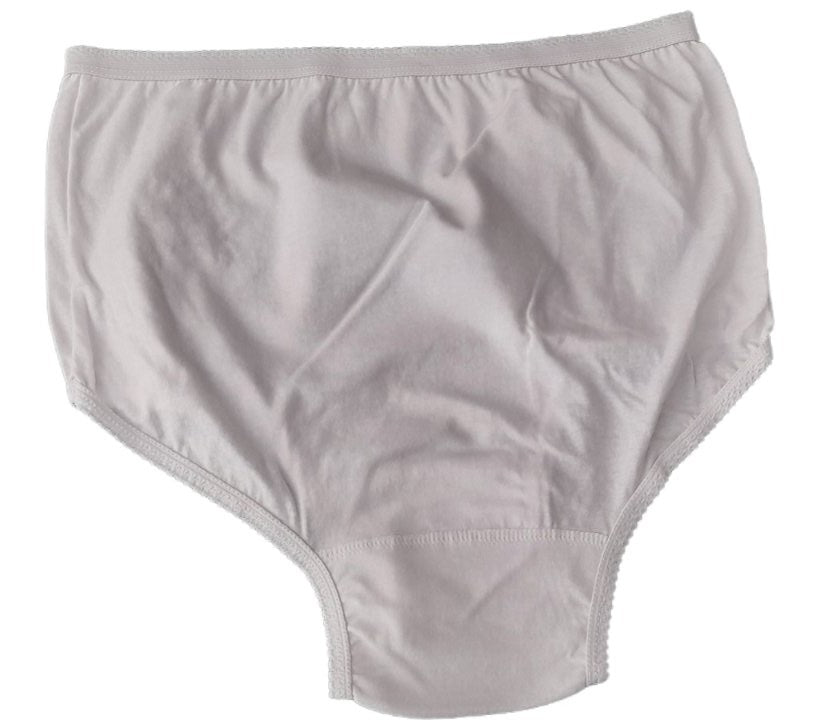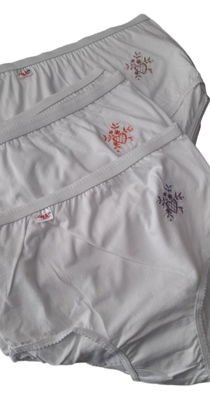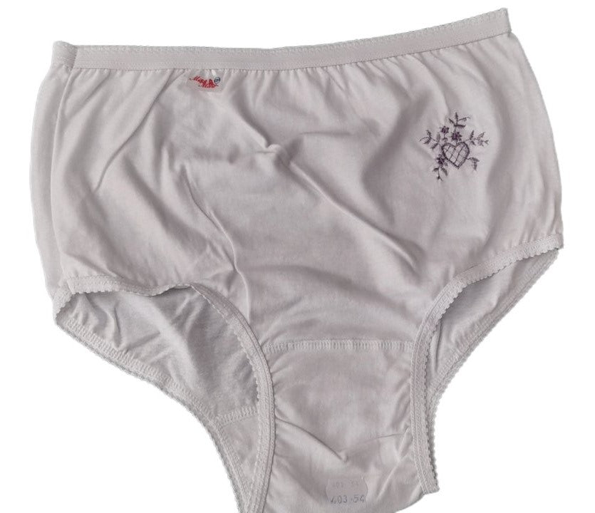 100% βαμβάκι, μόνο σε λευκό χρώμα. Ολόσωμη κυλότα σε ζακάρ με εσωτερικό (περαστό) λάστιχο στη μέση και "ντυμένο" λαστιχάκι στο πόδι. Η κλασική λύση για μεγαλύτερες κυρίες, που προσφέρει απόλυτη άνεση και ασφάλεια