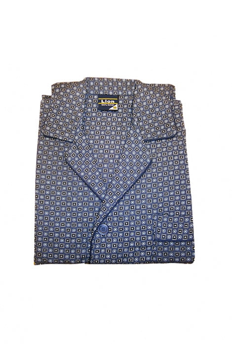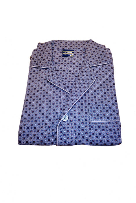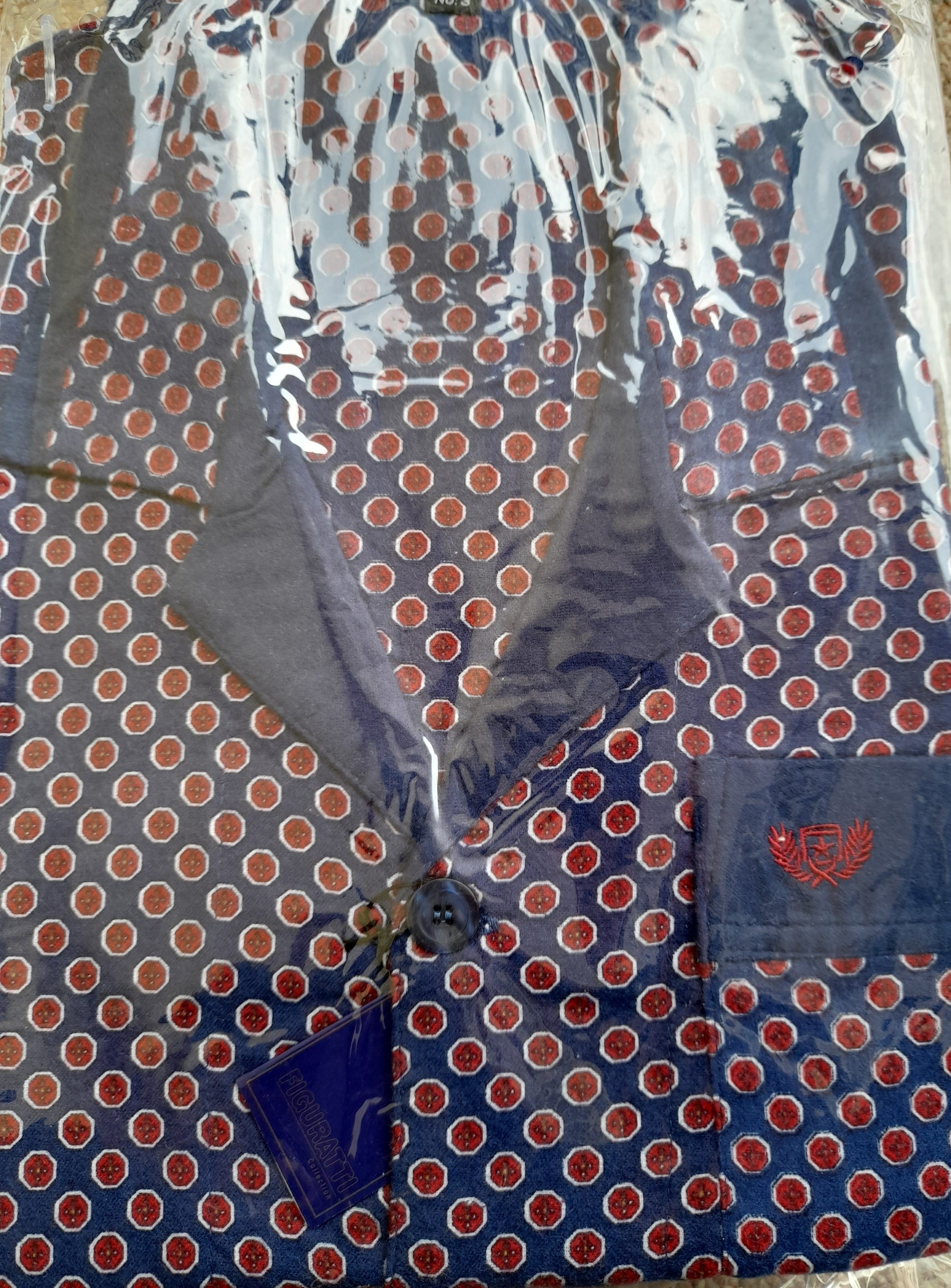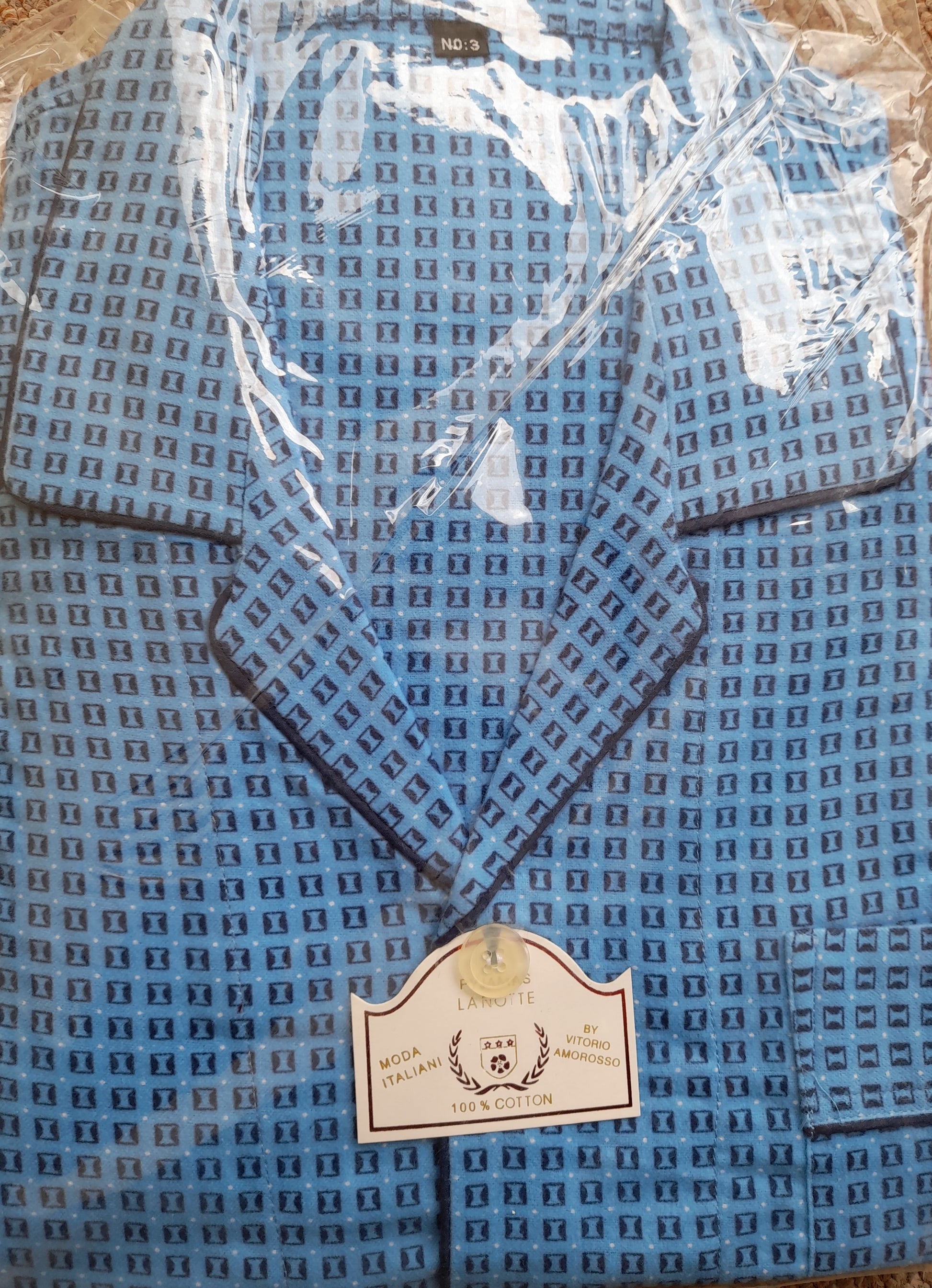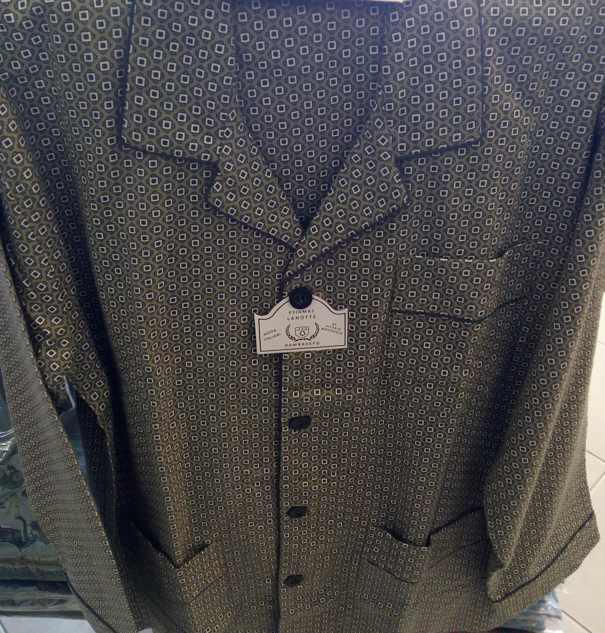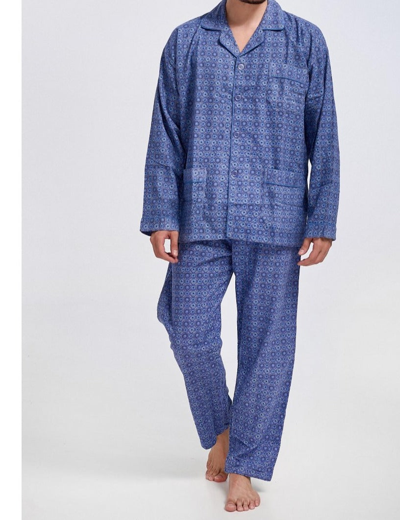 Ανδρική πιτζάμα 100% βαμβακερή, ελληνικής κατασκευής. Γιακάς και κουμπί ως κάτω. Κουμπί και στο παντελόνι. Ενδεχομένως τα σχέδια να διαφοροποιούνται των φωτογραφιών λόγω της συχνότητας των παραλαβών, αλλά πάντα στην ίδια κλασσική γραμμή και στυλ. Χρώματα: Μπλε, Σιελ, Λαδί, Γκρι, Ανθρακί   Μεγέθη: 3-4-5-6