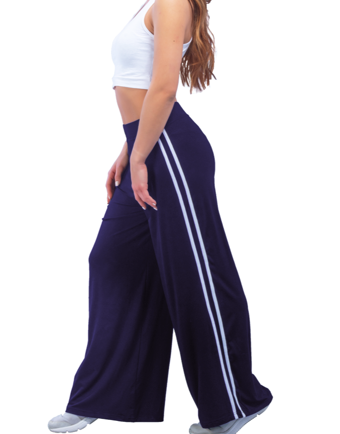 Παντελόνα ψηλόμεση δίχρωμη γυναικεία με ρέλια 95% βισκόζ 5% λύκρα. Με φαρδύ λάστιχο στη μέση. Για μοντέρνες και άνετες εμφανίσεις όλες τις ώρες.