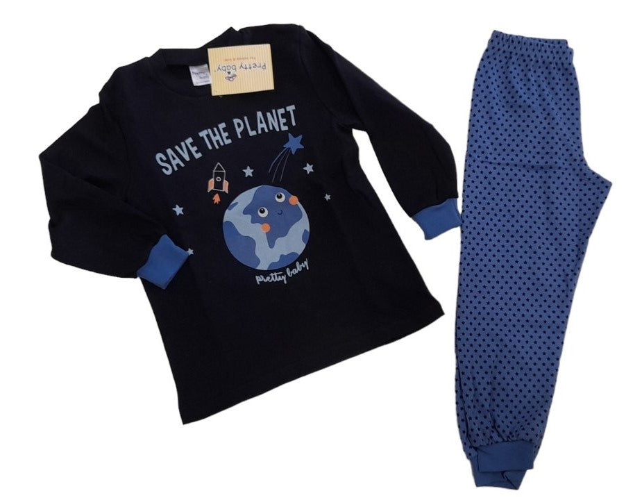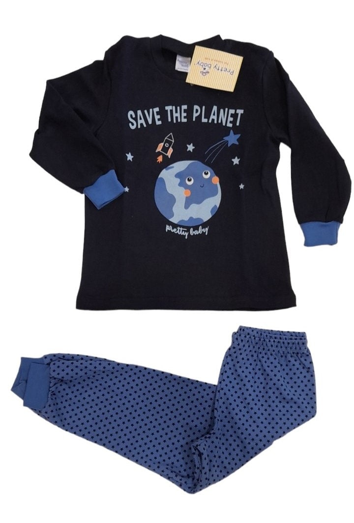 Βρεφική Πιτζάμα αγόρι space plane βαμβακερή με μανσέτες κάτω στο παντελόνι #63989
