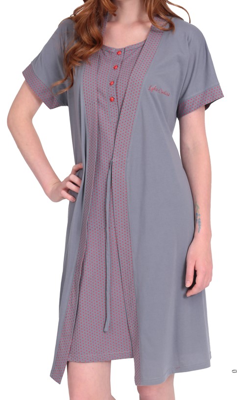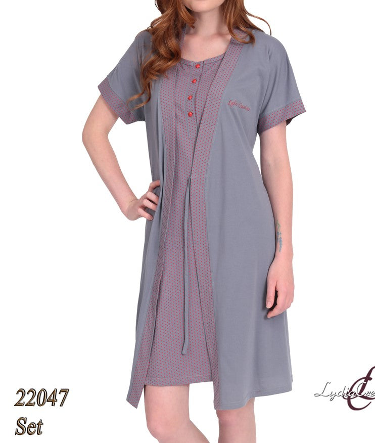Σετ Νεανικό ρόμπα & νυχτικό βαμβακερό με κοντό μανίκι #22047