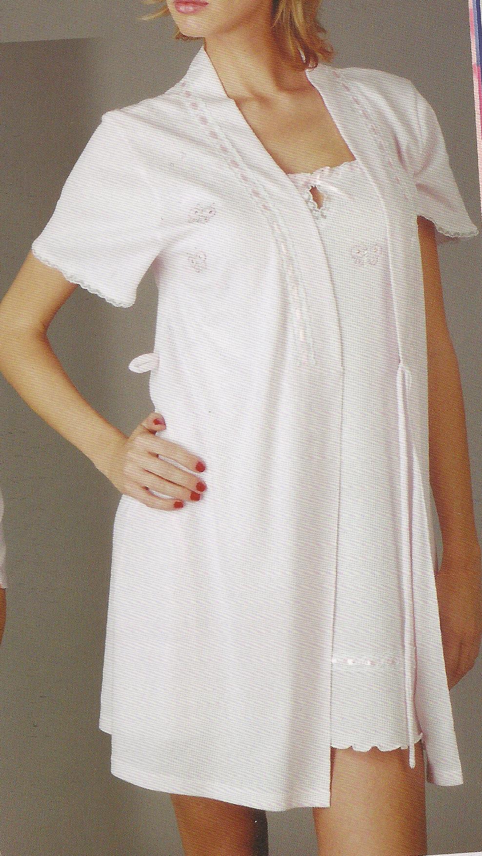 Σετ βαμβακερό ρόμπα και νυχτικό με κοντό μανίκι #0774