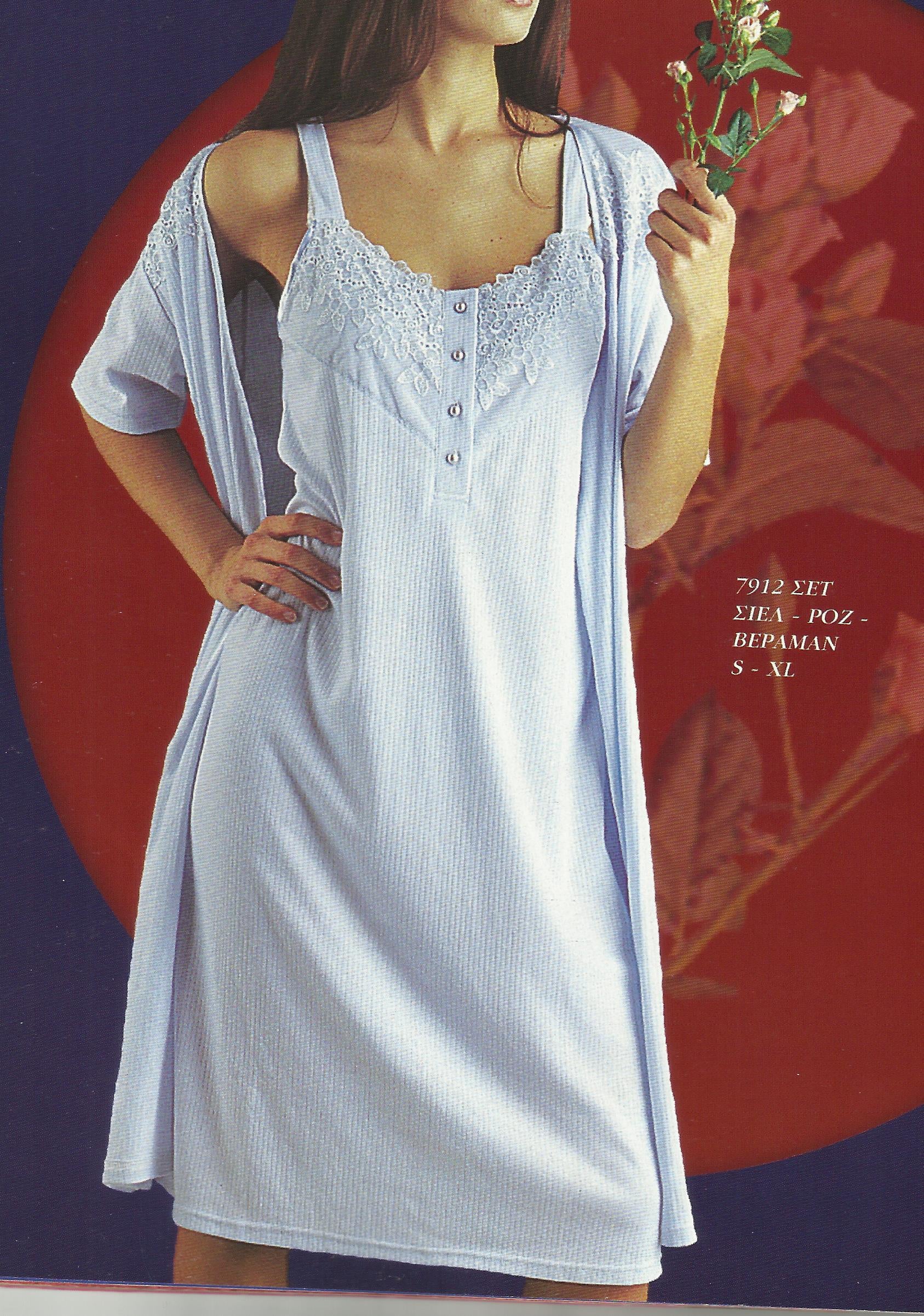 Κλασικό σετ ρόμπα και νυχτικό με κοντό μανίκι #7912