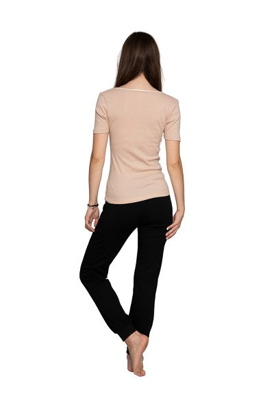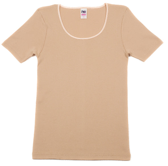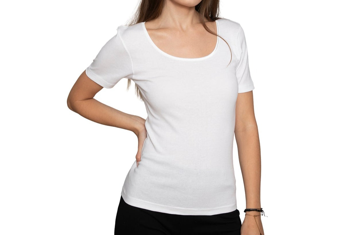Φανελάκι γυναικείο 100% βαμβάκι με κοντό μανίκι και κομψή σατέν λεπτομέρεια γύρω από το λαιμό. Ανάλαφρο και απαλό από εξαιρετικής ποιότητας βαμβάκι, με σατέν λεπτομέρεια (Χωρίς ραφές)