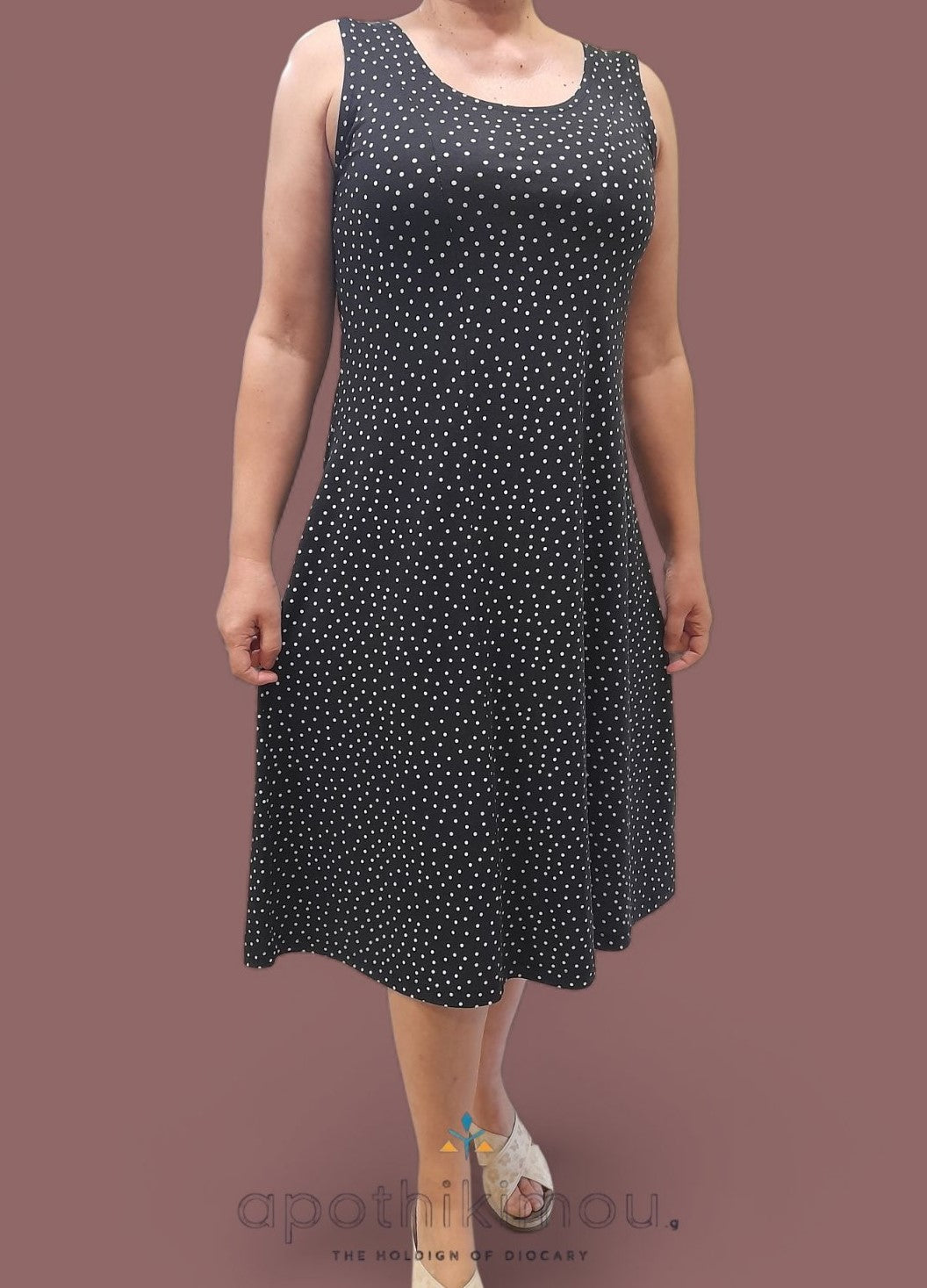 Φόρεμα βισκόζ χωρίς μανίκι φυλλαριστό σχέδιο ΠΟΥΑ #332 DOT