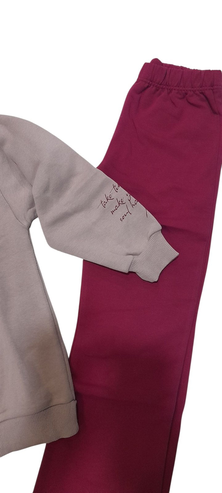 Υπέροχο σετ για κορίτσι σε βαμβακερό φούτερ. ΣΕΤ 80% βαμβάκι 20% πολυεστέρας  Nek kids wear η καλύτερη πραγματικά ελληνική εταιρία κατασκευής παιδικού ρούχου. Εξαιρετική ποιότητα κατασκευής, κορυφαία βαμβακερά φούτερ με όλες τις διασφαλίσεις ποιότητας, σεβασμού στο περιβάλλον και τον άνθρωπο και κορυφαίων ευρωπαϊκών προδιαγραφών. Εγκεκριμένες βαφές και νήματα.