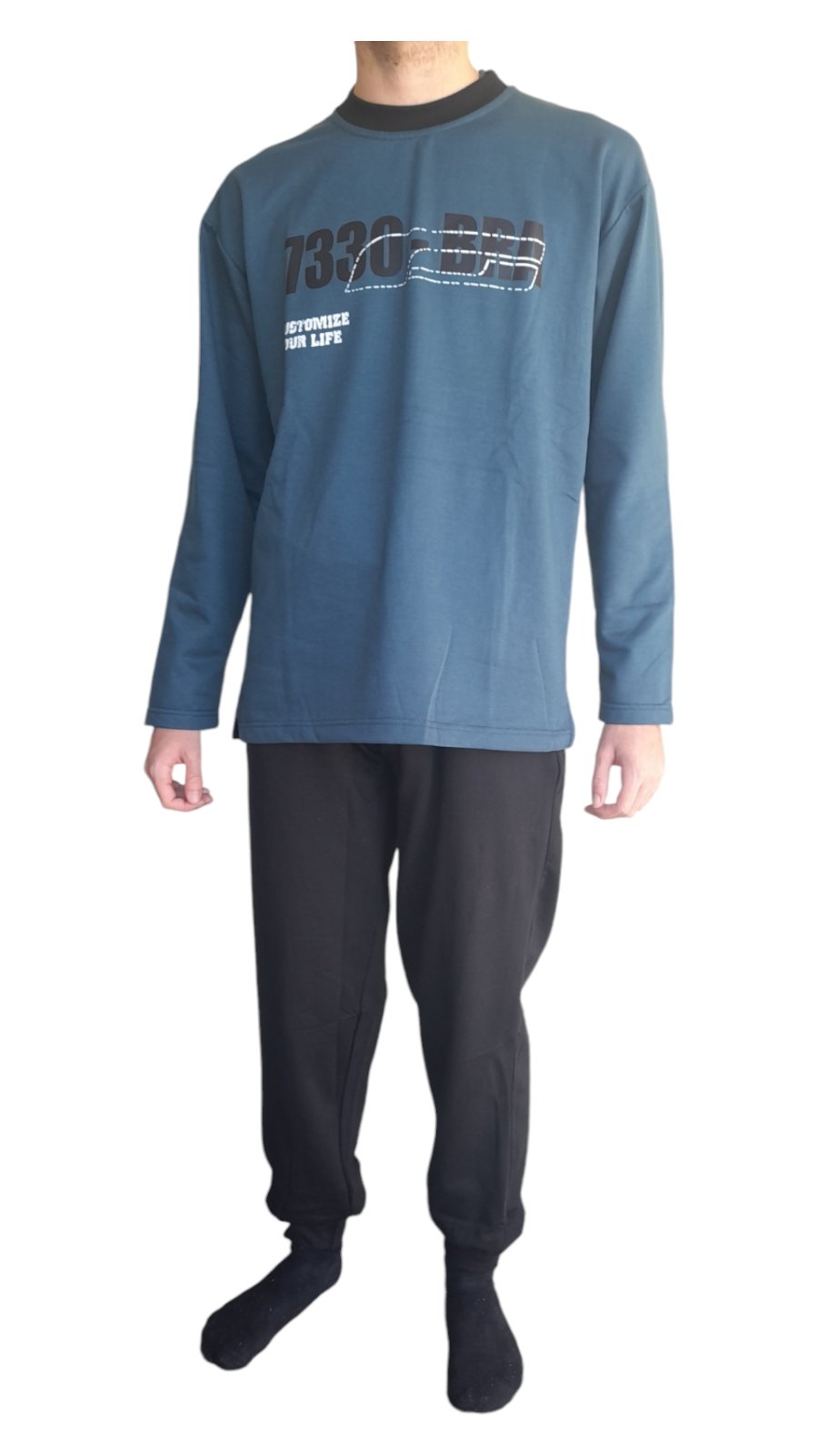 Ανδρική πιτζάμα φούτερ βαμβακερή με στρόγγυλο γιακά #241024