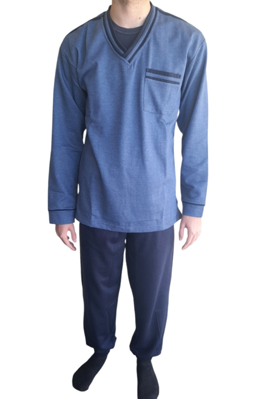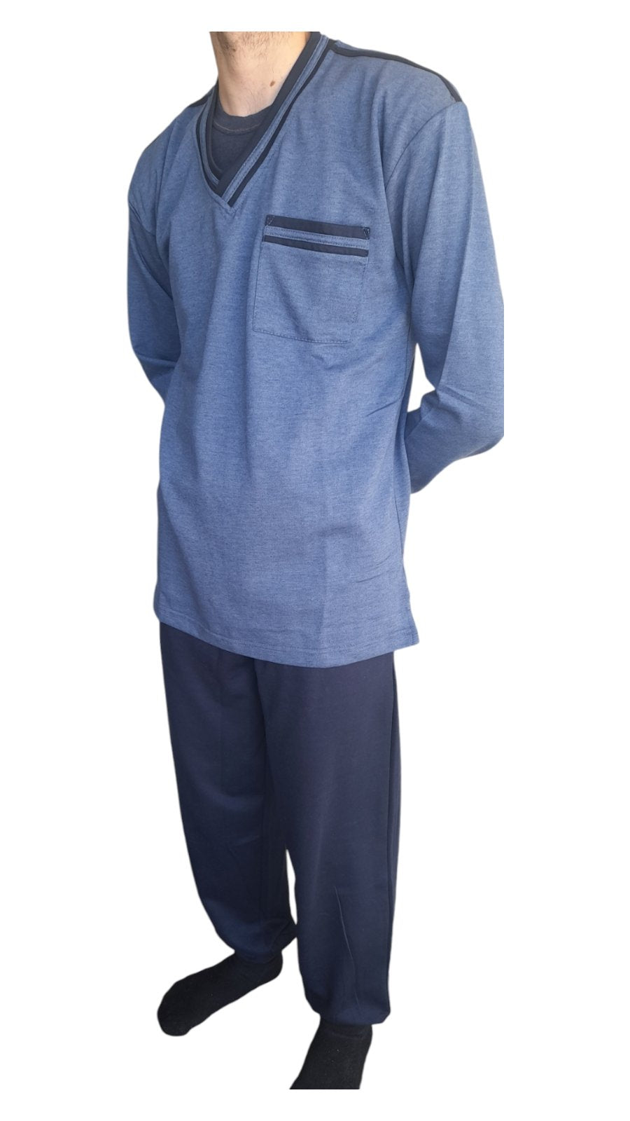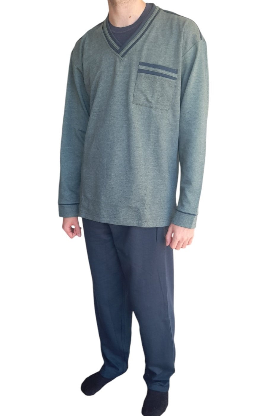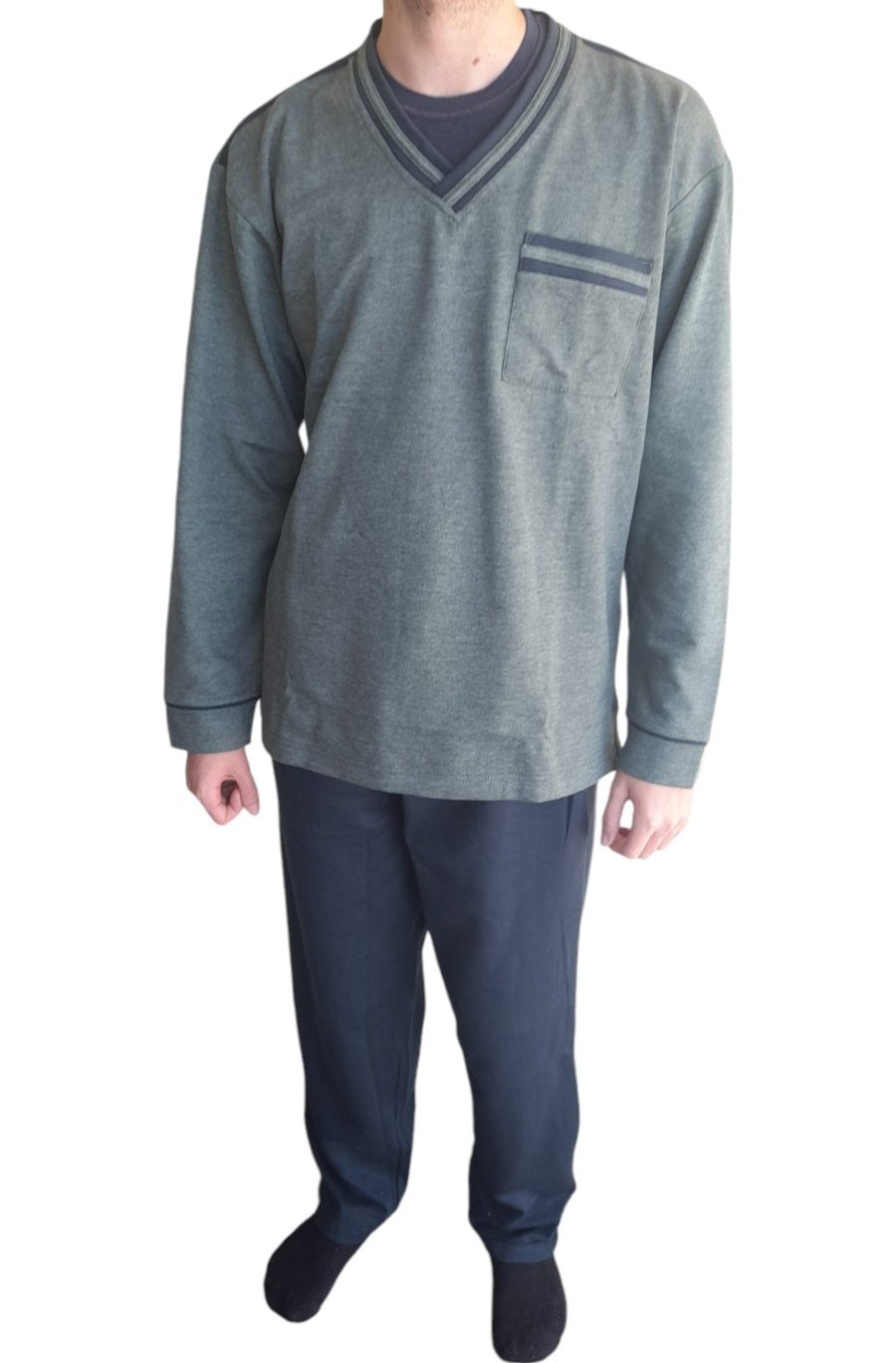 Ανδρική πιτζάμα φούτερ βαμβακερή με V γιακά #231024