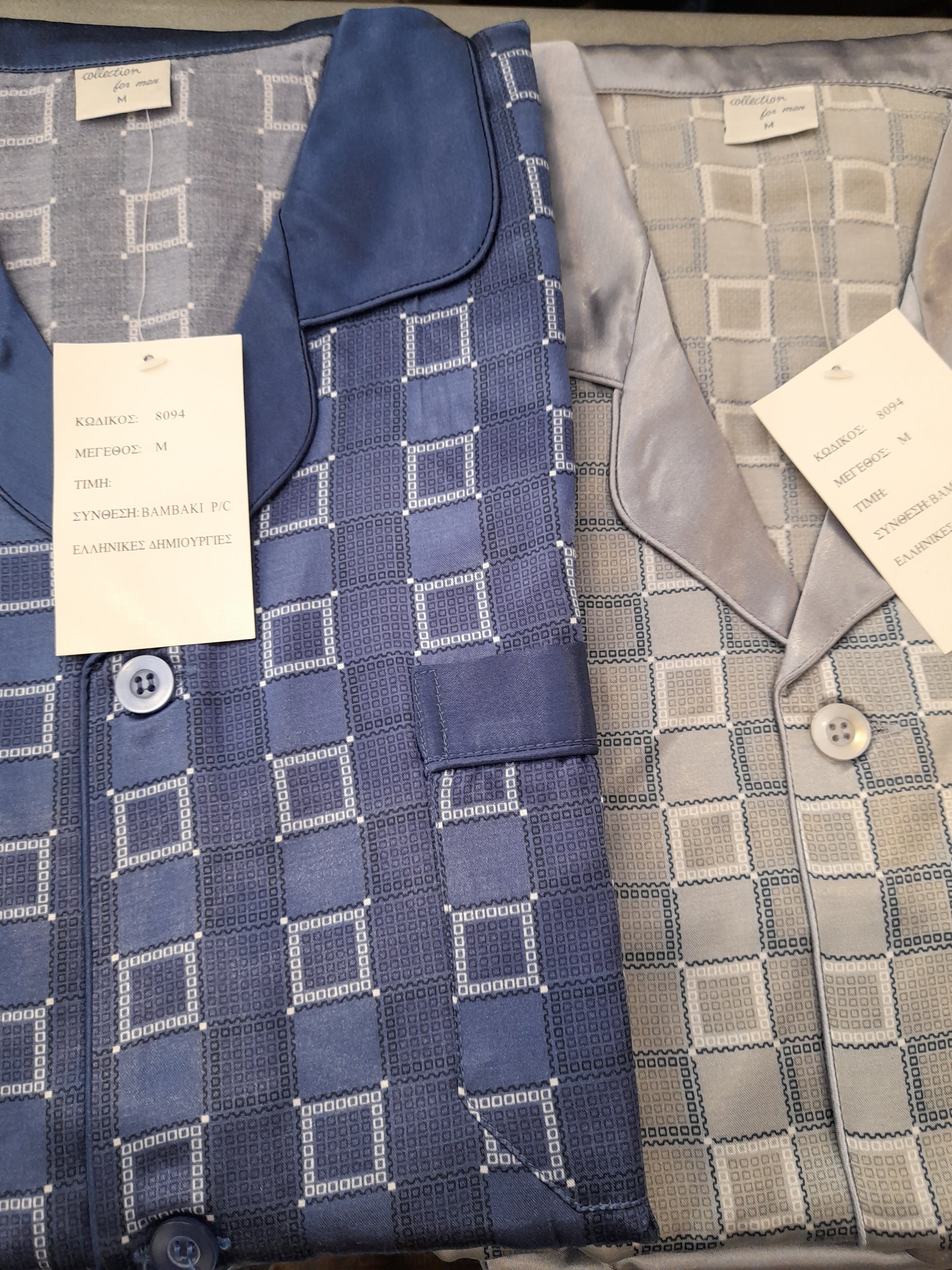 Ανδρική πιτζάμα Σατέν κοντό μανίκι. Κλασική γραμμή με άνετα μεγέθη, λάστιχο και κουμπί στο παντελόνι, 3 τσέπες στο σακάκι. Κουμπί ως κάτω με γιακαδάκι. Παντελόνι μονόχρωμο μακρύ. Πολυέστερ - σατέν εξωτερικά με μεγάλο καρώ σχέδιο