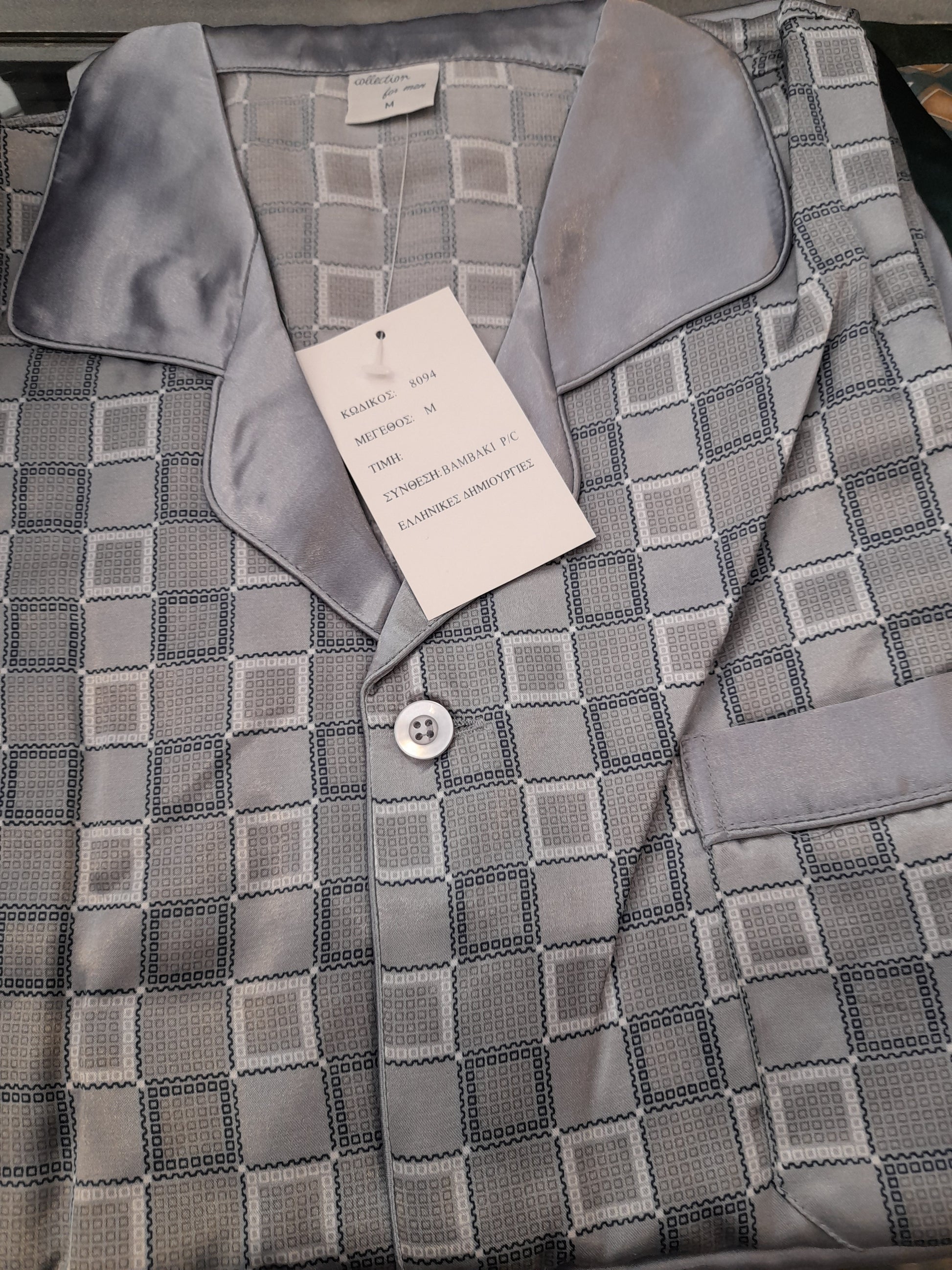 Ανδρική πιτζάμα σατέν με κοντό μανίκι και μακρύ παντελόνι #8096