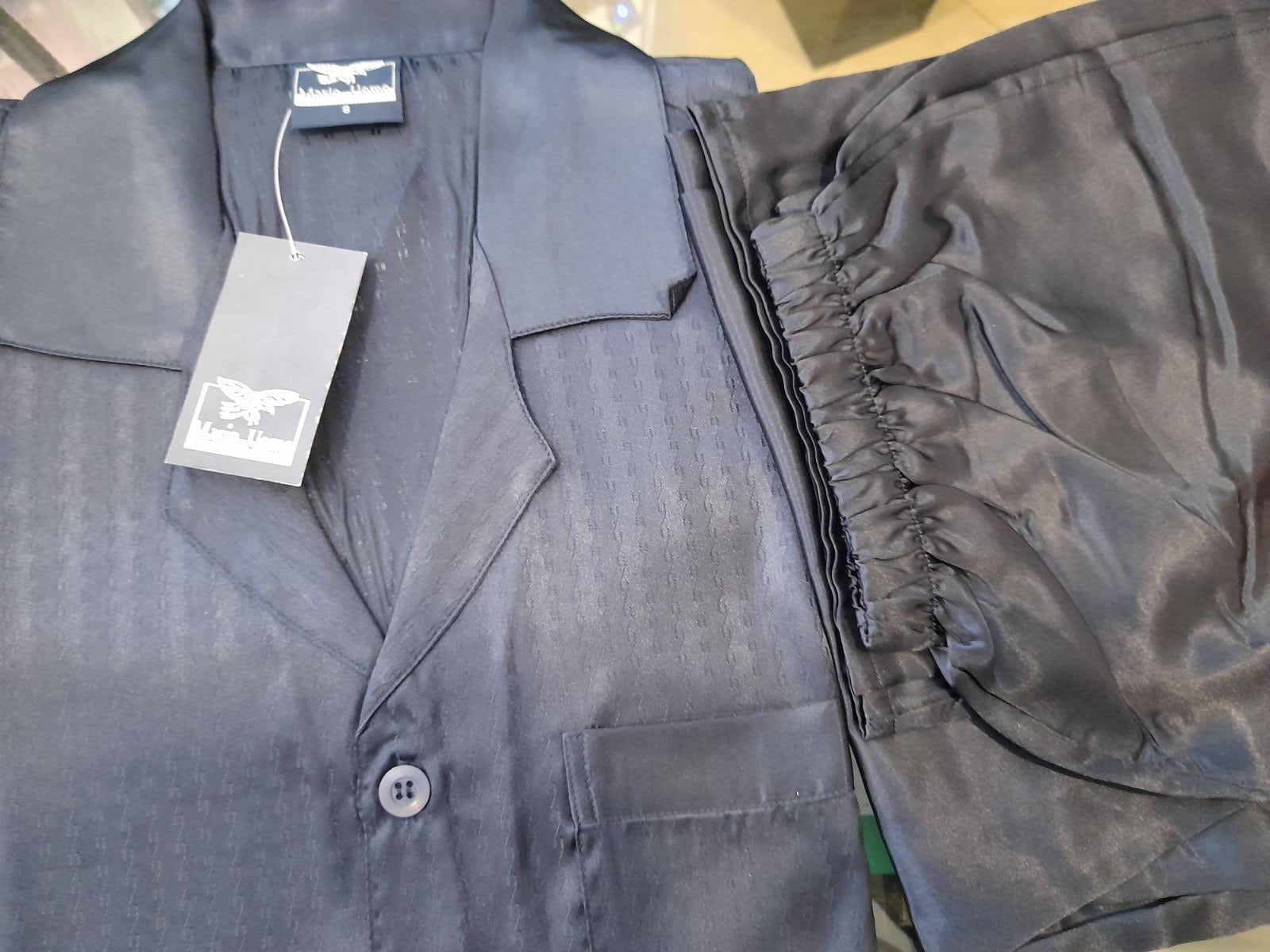 Ανδρική σατέν πιτζάμα με μακρύ παντελόνι και κοντό μανίκι #7045