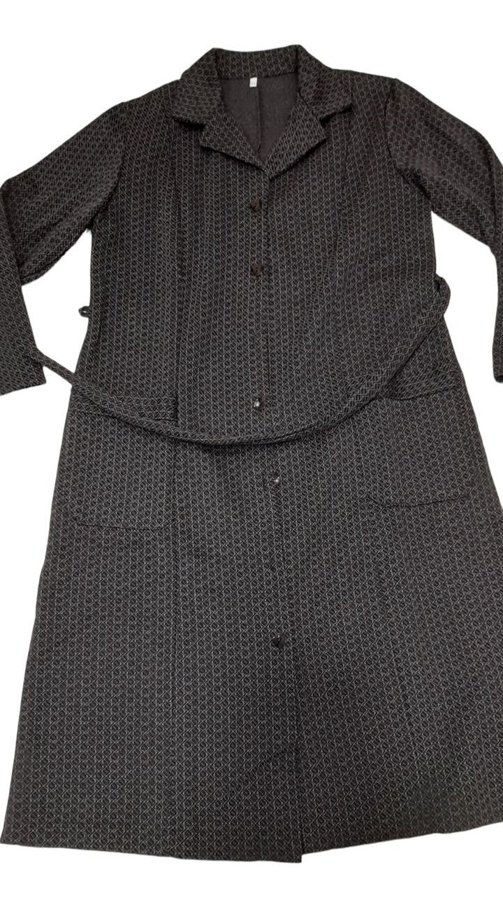 Ακρυλικό φόρεμα με κουμπί Ελληνικής ραφής, από την πιο εξειδικευμένη και ποιοτική εταιρία, στο χώρο του κλασικού γυναικείου ενδύματος το οποίο προτιμούν οι μεγάλες ηλικίες. Σωστά πατρόν και όλα τα ειδικά χαρακτηριστικά που αναζητούν οι ηλικιωμένοι. Τσέπες, κουμπιά και ζωνάκι στη μέση, ζεστό και άνετο.