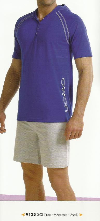 Πιτζάμα ανδρική με Κοντό παντελόνι Κουκούλα #8026