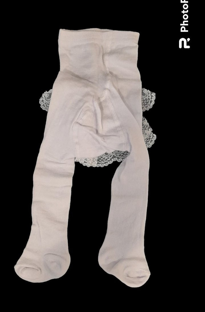 Βρεφικό βαμβακερό χοντρό καλσόν λευκό δαντέλα #3026