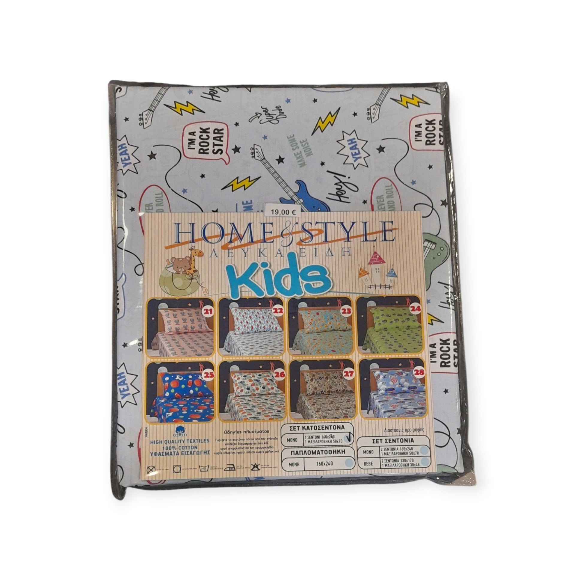 Σετ σεντόνι 100% βαμβάκι και μαξιλαροθήκη με παιδικό σχέδιο για αγόρια και κορίτσια. Η διάσταση είναι μεγάλη 160Χ270 έτσι ώστε να μπορεί να μετατραπεί και σε δύο σεντόνια κούνιας. Το μαξιλάρι 50Χ70 κανονικό.