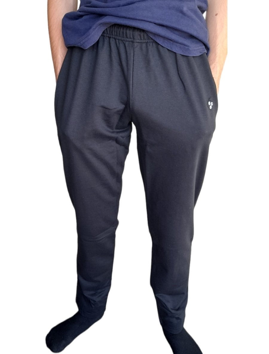 Βαμβακερό, μακρύ παντελόνι φόρμας χωρίς χνούδι. Ελαστική μέση με κορδόνι και δυο βαθιές τσέπες σε ίσια γραμμή, ανοιχτό κάτω