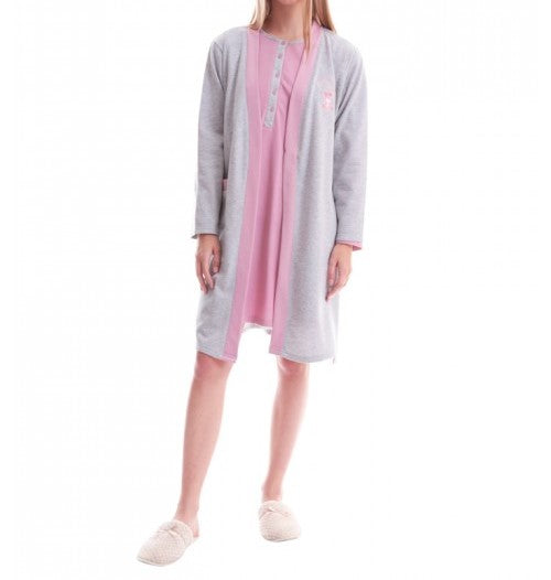 Βαμβακερό ΣΕΤ ρόμπα και νυχτικιά. Ζεστό, μοντέρνο, άνετο για όλες τις ώρες. Ζώνη στο ρομπάκι και πατιλέτα στο νυχτικό για άνεση και ευκολία  ΣΕΤ ΓΥΝΑΙΚΕΙΟ ΡΟΜΠΑ ΜΕ ΝΥΧΤΙΚΟ