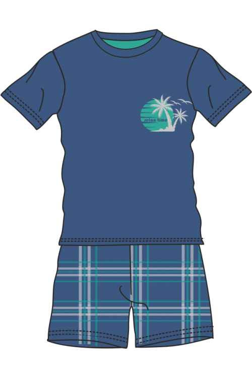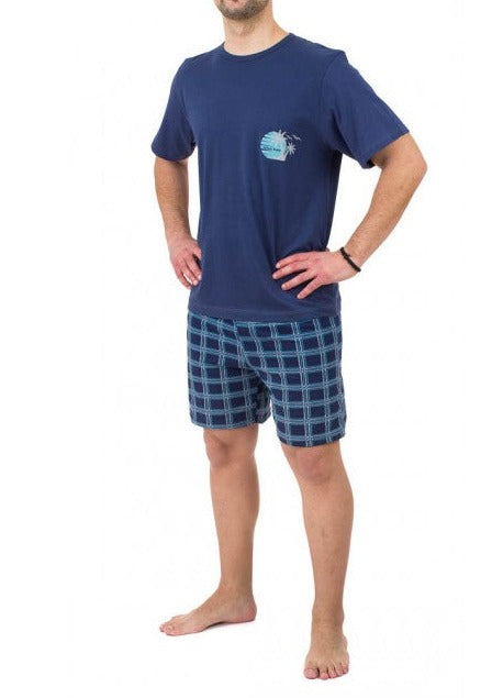 Ανδρική φόρμα ύπνου με καρώ βερμούδα & κοντό μανίκι #Β459