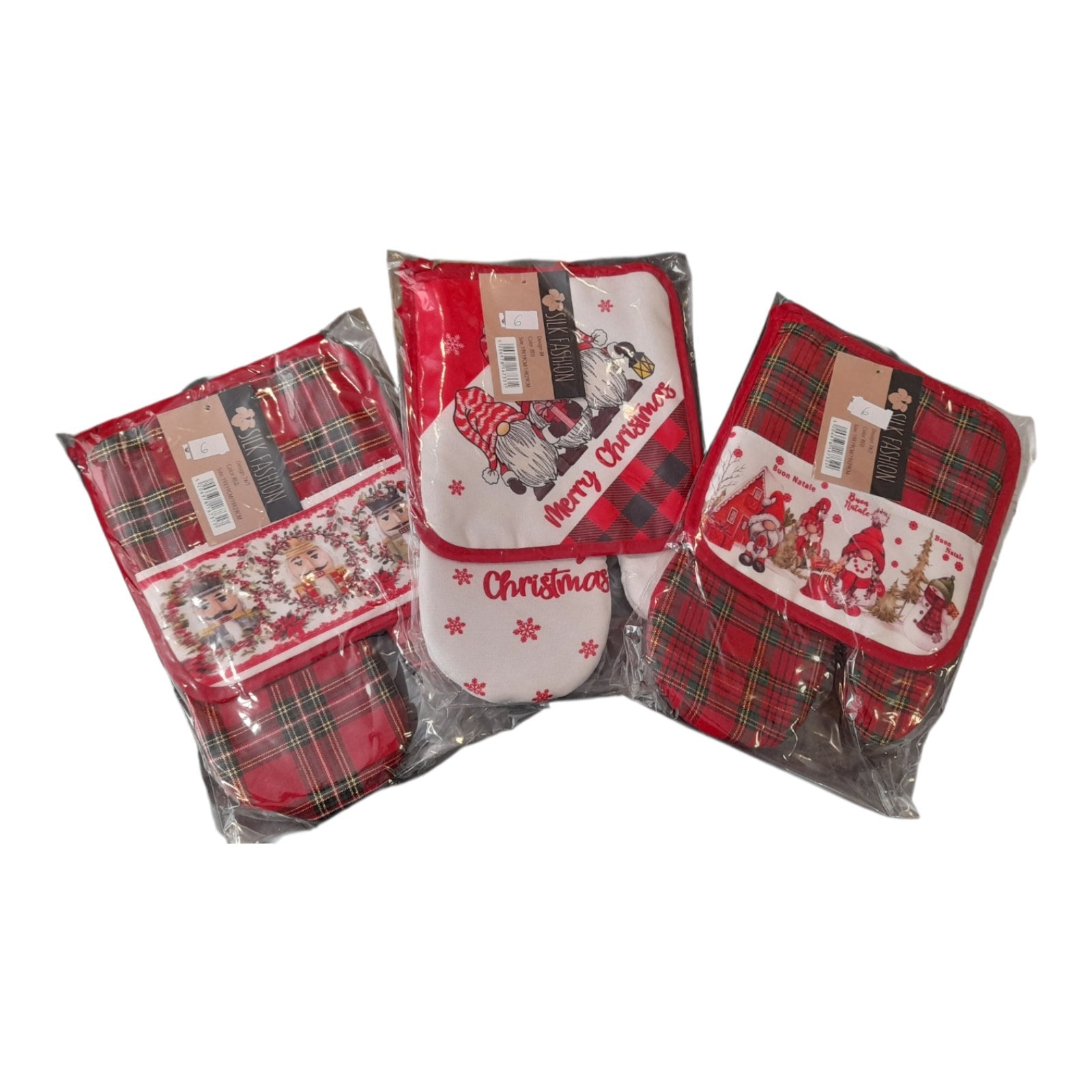 Χριστουγεννιάτικο Σετ 2 τεμ. πιάστρα και γάντι με θερμική αντοχή για χρήση στο φούρνο και στο μαγείρεμα. σε καρό ή ριγέ σε ωραία μοντέρνα χρώματα, όψη υφαντό.