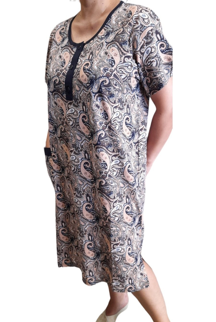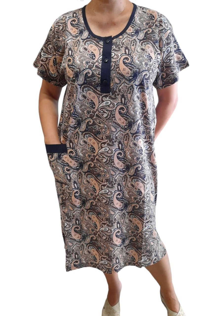 Κλασικό Μακό 3XL βαμβακερό φόρεμα με κοντό μανίκι Εμπριμέ #10330