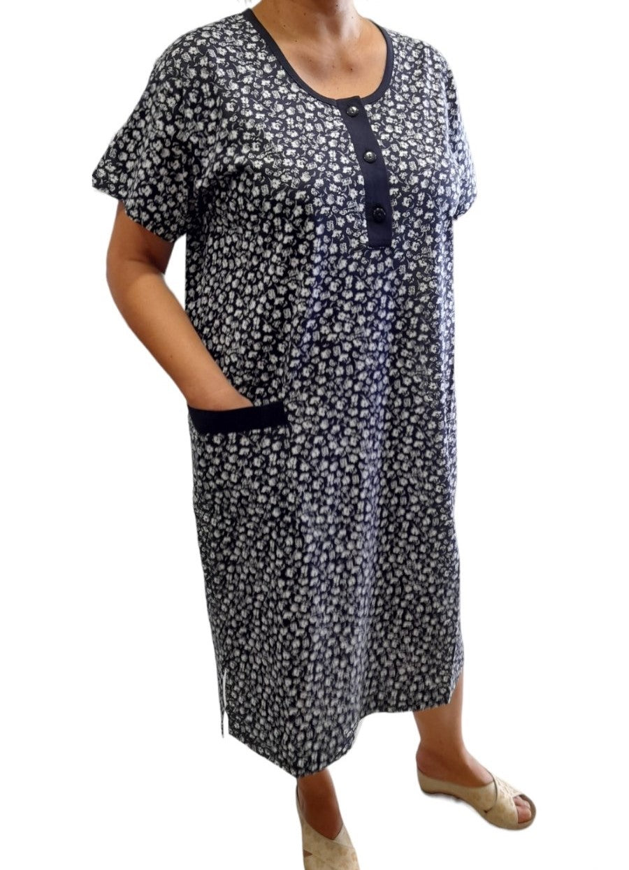 Ελληνικής κατασκευής από 100% ποιοτικότατο βαμβάκι! Floral Φόρεμα με λίγο μανίκι, πατιλέτα με τρία κουμπιά και τσέπη. Άνετο, δροσερό και όμορφο για όλες τις ώρες. Σε σκούρο φόντο με ανθάκι, λαχούρ ή σχέδιο. Σε άνετο μέγεθος 3XL και τετράγωνη γραμμή.